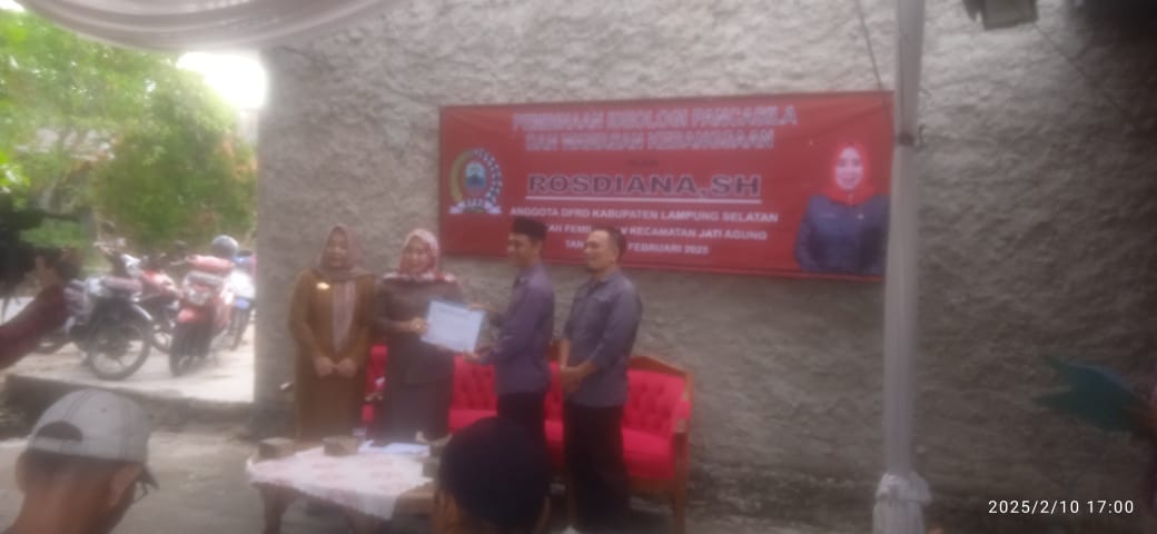 Lampung Selatan (SP) : Anggota DPRD dari Fraksi PDI Perjuangan Lampung Selatan Rosdiana menggelar sosialisasi Ideologi Pancasila Kebangsaan (IPWK) di perumahan Permata Asri Desa Karang Anyar Kecamatan Jati Agung Lampung Selatan Senin 10/2/2025.