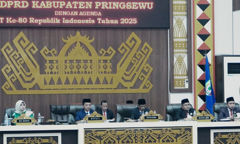 Rapat paripurna istimewa dipimpin Ketua DPRD Pringsewu Suherman, dihadiri Bupati Pringsewu Riyanto Pamungkas dan Wabup Umi Laila beserta jajaran pemerintah daerah, forkopimda dan instansi vertikal, TP-PKK, DWP, Ikada, sejumlah lembaga, tokoh dan berbahagia elemen lainnya.