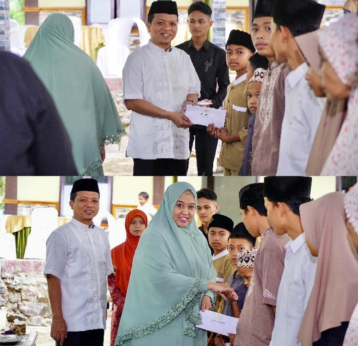 Pringsewu (SP) : Pada kegiatan Safari Ramadan sekaligus Ngobrol Bareng Bupati Serap Aspirasi (Ngopi Serasi) di Masjid At Taqwa, Pekon Gunung Raya, Kecamatan Pantura, Kabupaten Pringsewu, pada Senin (2/3/2026), Bupati Pringsewu Riyanto Pamungkas didampingi Wabup Umi Laila menyerahkan bantuan pemerintah daerah berupa ambal kepada empat mushala dan satu masjid, serta santunan anak yatim. Serta bantuan Badan Amil Zakat Nasional (BAZNAS) berupa paket sembako kepada kaum dhuafa di wilayah setempat.
