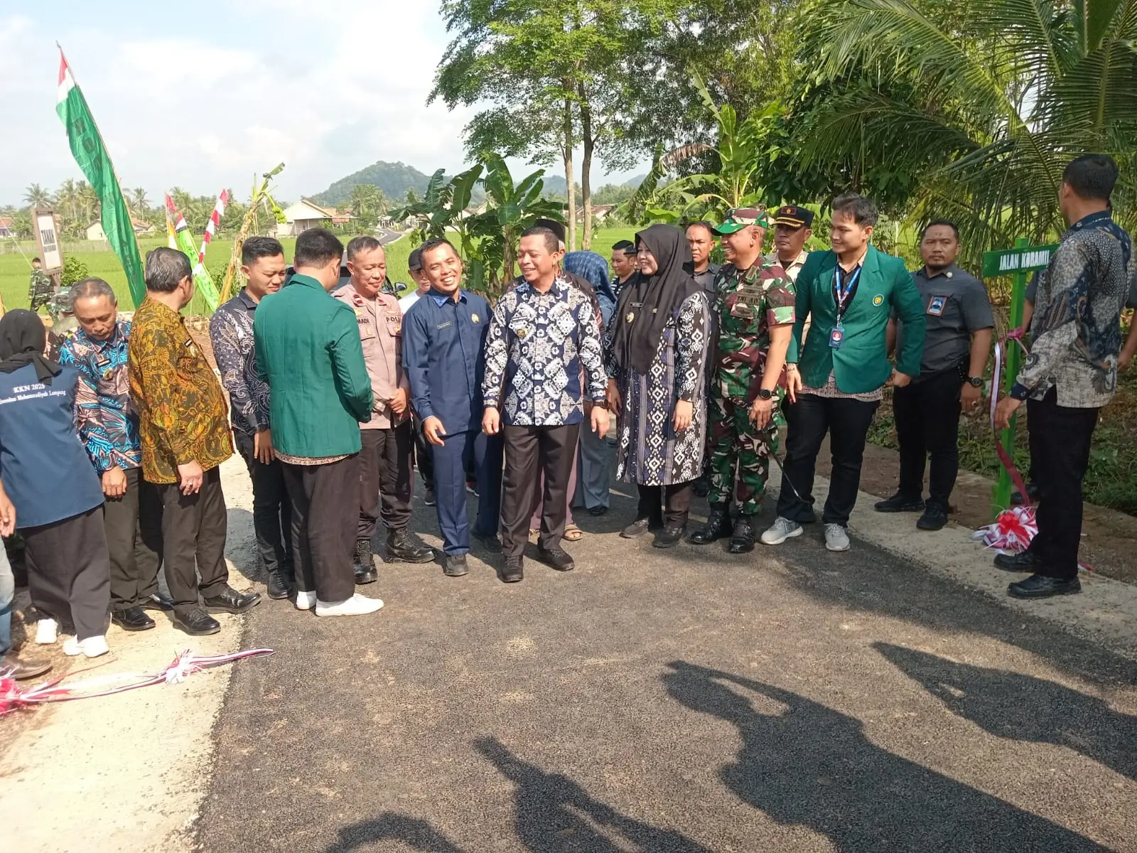 Pringsewu (SP) : Bupati Pringsewu Riyanto Pamungkas bersama Dandim 0424/TGM Letkol Inf.Dwi Djunaidi Mulyono meresmikan nama Jalan Koramil di Pekon Ambarawa, Kecamatan Ambarawa, Jumat (1/8/2025) pagi. Peresmian nama Jalan Koramil pada jalan hotmix sepanjang ± 1 km yang dibangun sebagai wujud kemanunggalan TNI dan rakyat ini ditandai dengan prosesi pengguntingan pita dan pemotongan tumpeng.