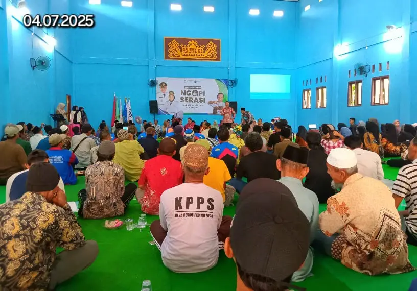 Pringsewu (SP) : Acara Ngobrol Bareng Bupati Serap Aspirasi (Ngopi Serasi), untuk kali kedua, dilaksanakan di Balai Pekon Margosari, Kecamatan Pagelaran Utara, Kabupaten Pringsewu, Provinsi Lampung, Jumat (4/7/2025).