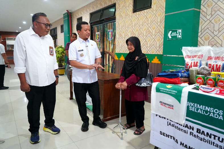 Pringsewu (SP) : Bupati Pringsewu Riyanto Pamungkas meninjau acara penyerahan bantuan Asistensi Rehabilitasi Sosial (ATENSI) dari Kementerian Sosial RI melalui Sentra Handayani Jakarta di Lobi Kantor Bupati Pringsewu, Rabu (29/4/2026) pagi.