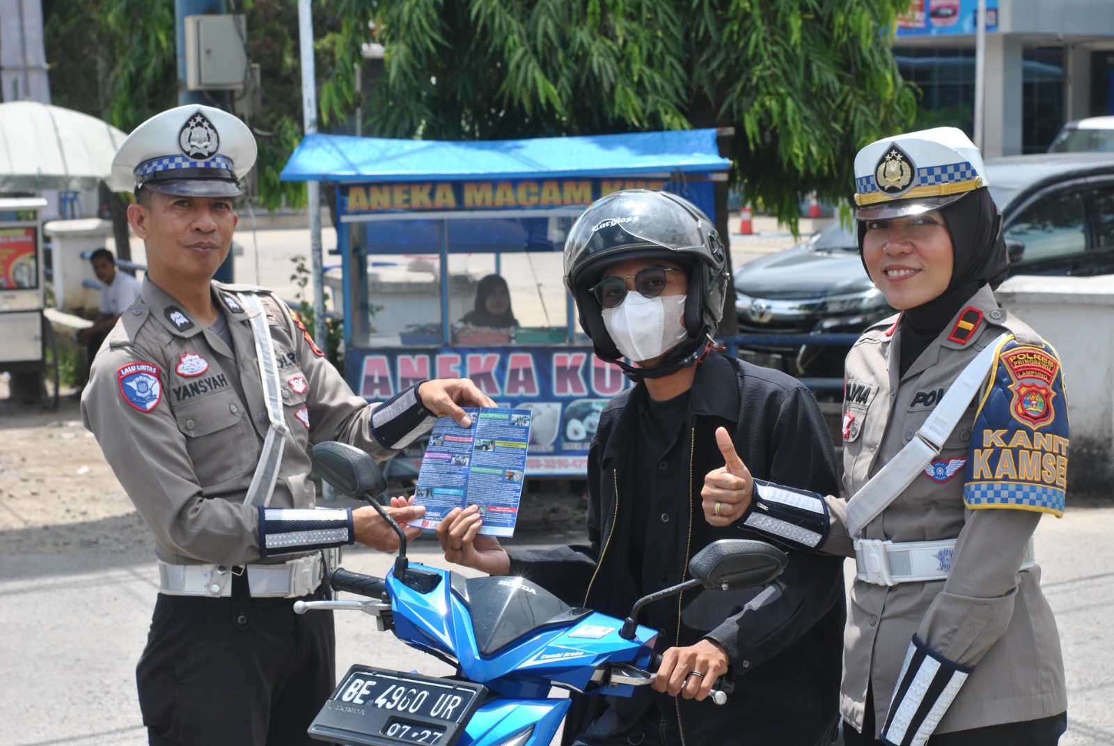 Selain memberikan himbauan secara langsung, petugas juga membagikan brosur keselamatan dan masker kepada pengendara. Kampanye ini diharapkan dapat meningkatkan disiplin masyarakat dalam berkendara, sehingga tercipta lalu lintas yang lebih aman dan tertib di wilayah Pringsewu.