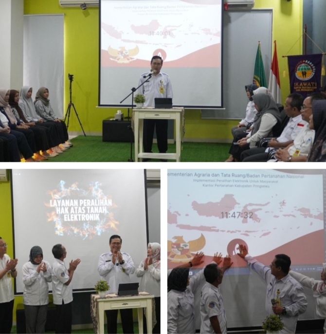 Pringsewu (SP) : Dalam rangka meningkatkan kualitas pelayanan kepada masyarakat, Kantor Pertanahan Kabupaten Pringsewu resmi meluncurkan Layanan Peralihan Elektronik dan Sistem Antrian Online, yang dilaksanakan pada hari Rabu (30/07) di Aula Kantor Pertanahan Pringsewu.