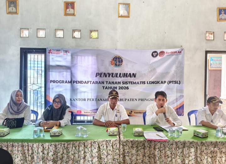 Pringsewu (SP) : Kantor Pertanahan Kabupaten Pringsewu melaksanakan kegiatan Penyuluhan Pendaftaran Tanah Sistematis Lengkap (PTSL) Tahun Anggaran 2026 di Kantor Pekon Penjerejo, Kecamatan Gading Rejo. Kegiatan ini merupakan bagian dari upaya memberikan edukasi dan pemahaman kepada masyarakat terkait pelaksanaan program PTSL, Rabu 11/2/2026.