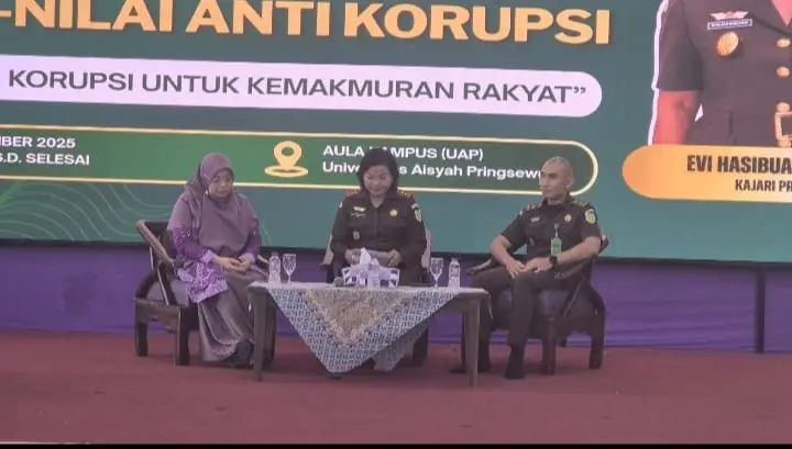 Pringsewu (SP) : Kejaksaan Negeri Pringsewu melaksanakan kegiatan Sosialisasi dan Edukasi Nilai-Nilai Antikorupsi di Aula Universitas Aisyah Pringsewu pada Selasa, 09 Desember 2025, pukul 14.30 WIB.