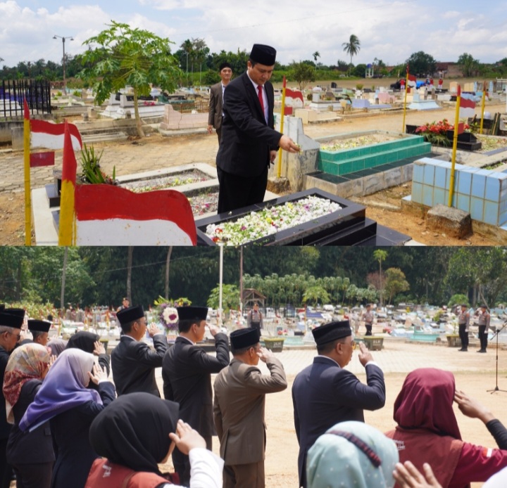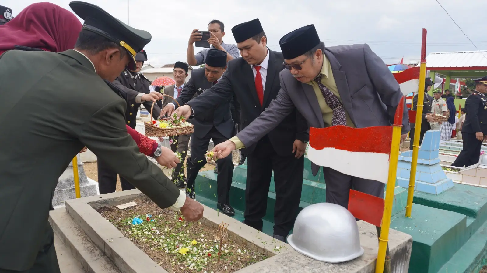 Selesai Upacara Kepala Kantor Pertanahan Ulin NuhaS.SiT.,M.M turut serta berziarah dan tabur bunga di Taman Makam Pejuang Purnayudha Bhakti, Keputran, Kabupaten Pringsewu, serta ramah-tamah dan pemberian tali asih kepada para anggota Legiun Veteran RI di lobi Kantor Bupati Pringsewu.