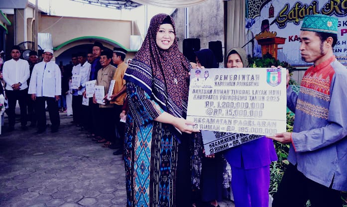 Bantuan-bantuan tersebut diserahkan langsung oleh Wakil Bupati Pringsewu Umi Laila pada acara Safari Ramadan 1446 H di Masjid Baitul Maghfiroh, Pekon Sukaratu, Kecamatan Pagelaran, Senin (10/3/2025) petang.
