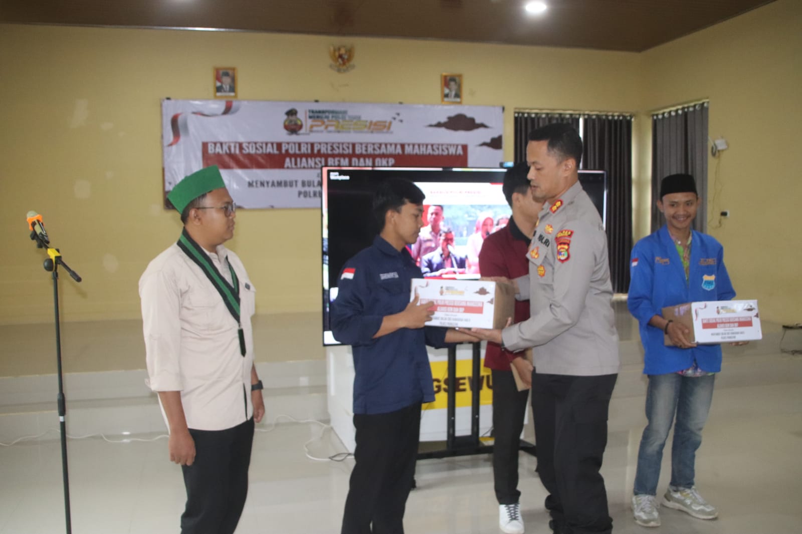 Pringsewu (SP) : Polres Pringsewu berkolaborasi dengan Aliansi Badan Eksekutif Mahasiswa (BEM) dan Organisasi Kemasyarakatan Pemuda (OKP) se-Kabupaten Pringsewu menyalurkan bantuan sosial Polri Presisi kepada warga kurang mampu di wilayahnya, Kamis (27/2/2025). Aksi sosial ini digelar menjelang bulan suci Ramadan sebagai wujud kepedulian terhadap masyarakat yang membutuhkan.