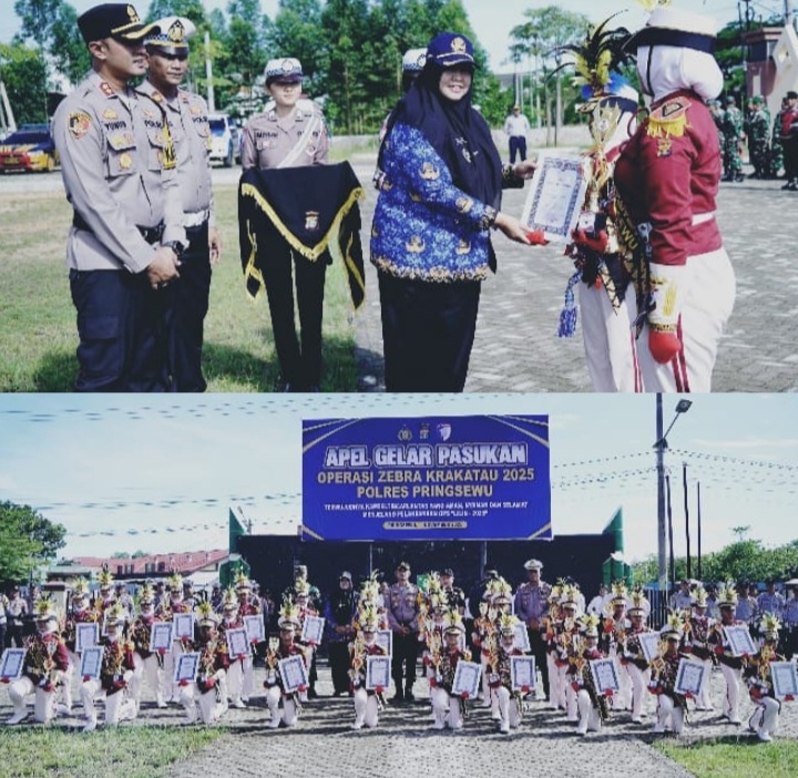 Pringsewu (SP) : Kepolisian Negara Republik Indonesia akan melaksanakan Operasi Zebra Krakatau 2025 selama 14 hari kedepan (17-30 November 2025). Terkait hal tersebut, Kepolisian Resor Pringsewu menggelar Apel Gelar Pasukan, dipimpin oleh Kapolres Pringsewu AKBP M.Yunus Saputra di halaman Mapolres setempat, Senin (17/11/2025).