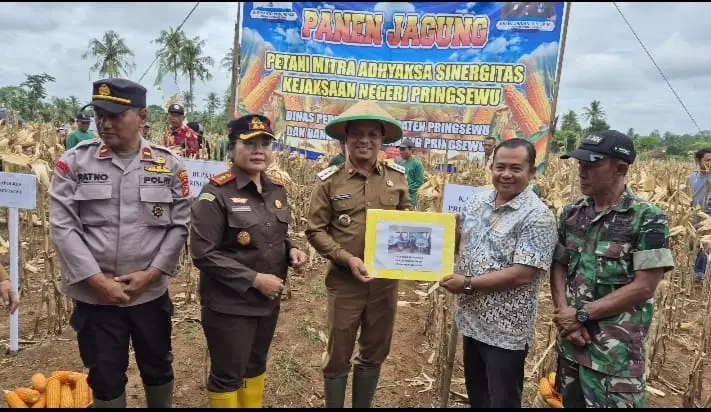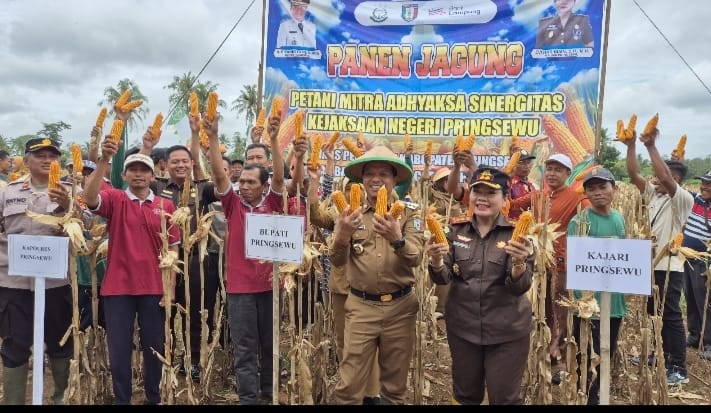 Pringsewu (SP) : Kejaksaan Negeri Pringsewu melaksanakan kegiatan panen jagung Program Petani Mitra Adhyaksa (PMA) di lahan pilot project seluas 5 hektare di Pekon Enggal Rejo, Kecamatan Adiluwih Selasa 9/12/2025.