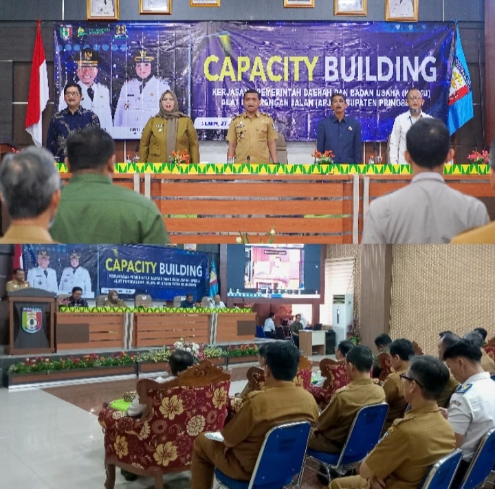 Pringsewu (SP) : Sebagai langkah strategis dalam mempercepat pembangunan infrastruktur penerangan jalan yang modern, efisien, dan berkelanjutan, Pemerintah Kabupaten Pringsewu Provinsi Lampung melaksanakan kegiatan Capacity Building Kerjasama Pemerintah Daerah dan Badan Usaha (KPDBU) Alat Penerangan Jalan (APJ) di Aula Utama Pemkab setempat, pada Senin (27/4/2026).
