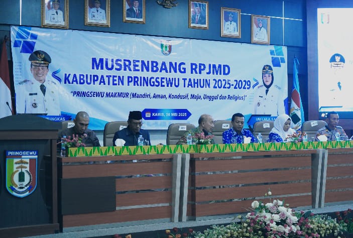 Pringsewu (SP) : Pemerintah Kabupaten Pringsewu Pringsewu menggelar Musyawarah Perencanaan Pembangunan (Musrenbang) Rencana Pembangunan Jangka Menengah Daerah (RPJMD) Kabupaten Pringsewu 2025-2029.