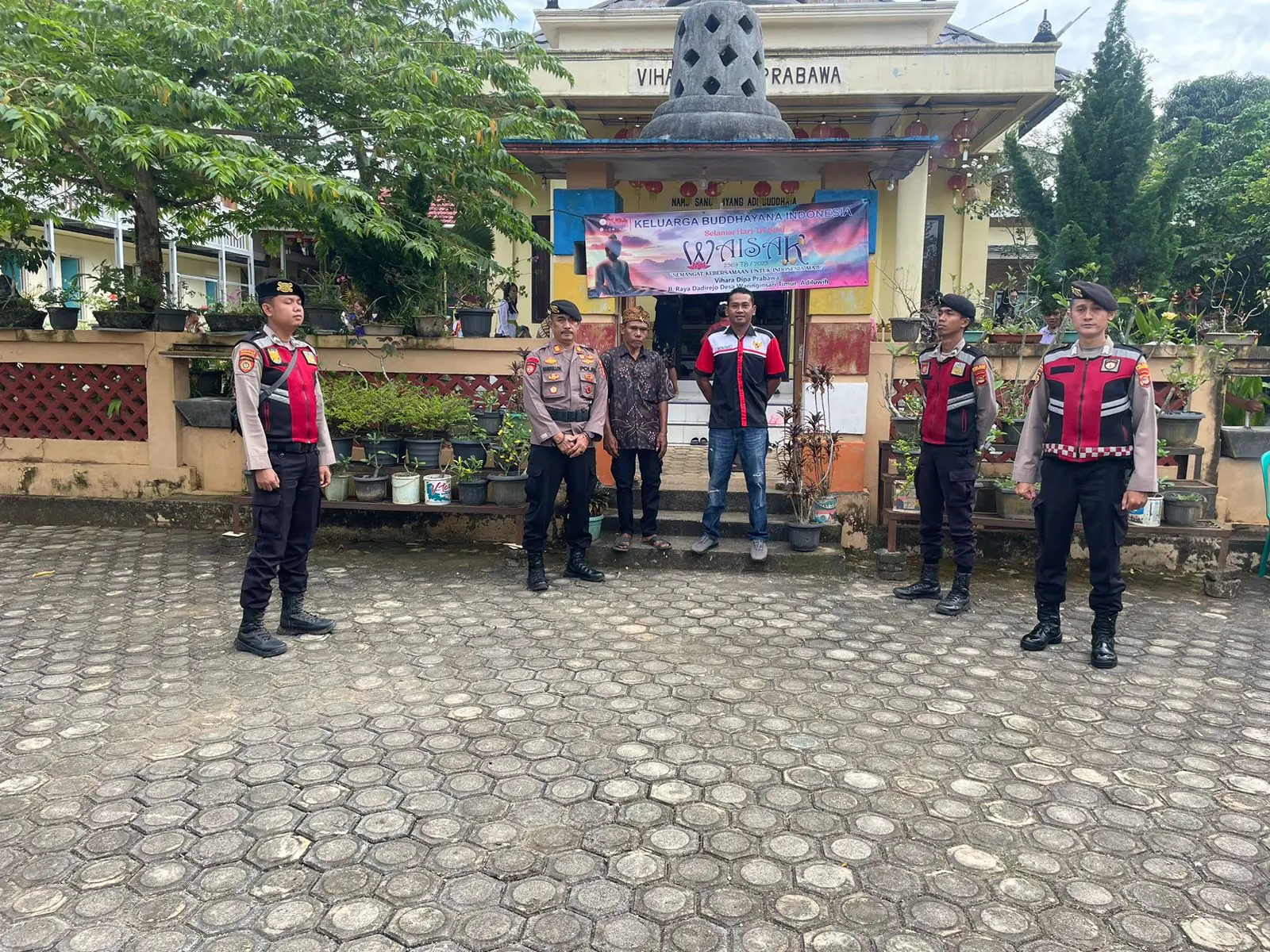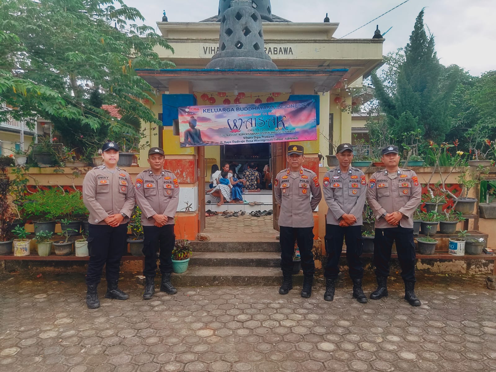 Pringsewu (SP) : Tiga vihara di Kabupaten Pringsewu mendapat penjagaan dari aparat kepolisian saat perayaan ibadah Hari Raya Waisak 2569 BE yang jatuh pada Senin (12/5/2025).