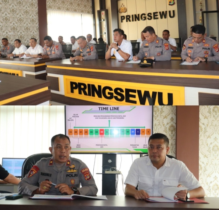 Pringsewu (SP) : Polres Pringsewu menggelar rapat koordinasi (rakor) internal dalam rangka kesiapan pelaksanaan Operasi Lilin Krakatau 2025 untuk pengamanan Natal 2025 dan Tahun Baru 2026. Kegiatan tersebut berlangsung di Aula Mapolres Pringsewu, Senin (15/12/2025).